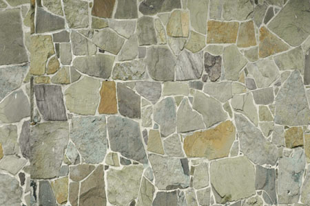 Stone veneer facing that is imported, quarried, or found in an area other than where it is being used, then mortared together and anchored to a masonry block wall. The stone may also have had extensive sand-sawed cutting and sizing done. The stone provides ornamentation only and not structural support for the building. Assumes exterior wall design attributes such as numerous corners, window and door shapes and openings typical of high value homes. Can also include ashlar cut stones, custom coloring, and texturing.