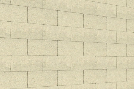 A concrete masonry block wall constructed of hollow concrete masonry units with reinforcing and set in mortar. Assumes exterior wall design attributes such as numerous corners, window and door shapes and openings typical of high value homes.